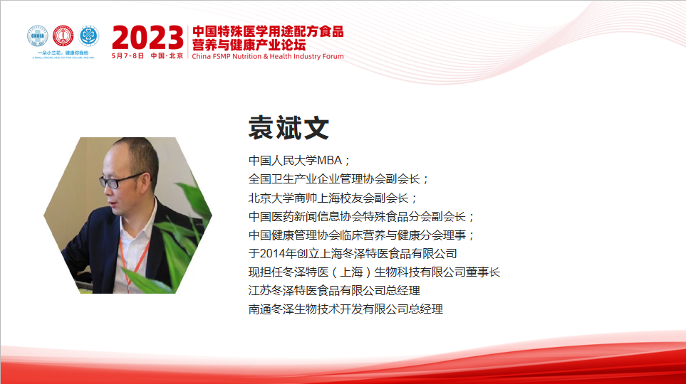 解決痛點(diǎn)最重要的環(huán)節,把標準、把規則適應我們市場(chǎng)的方向,適應中國患者的需求。才能夠做到我們高質(zhì)量發(fā)展的目標。期待GB29922(特殊醫學(xué)用途配方食品通則)的更新,滿(mǎn)足市場(chǎng)需求。特醫食品通則整體的任務(wù)是我國食品安全風(fēng)險評估中心職責及職能密不可分的,因此今天特地把劉愛(ài)東主任專(zhuān)門(mén)邀請過(guò)來(lái),想通過(guò)在風(fēng)評中心關(guān)于食品安全相關(guān)的工作中,如何更好地促進(jìn)特醫行業(yè)的發(fā)展。