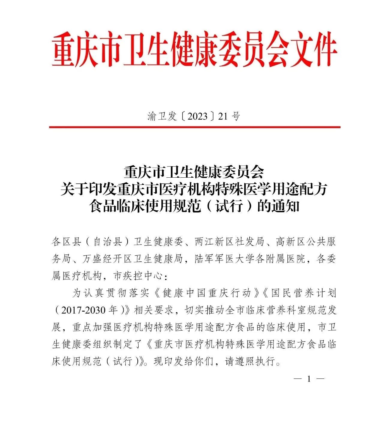 重慶市衛健委發(fā)布關(guān)于 「特醫食品」 臨床使用規范(試行)的通知