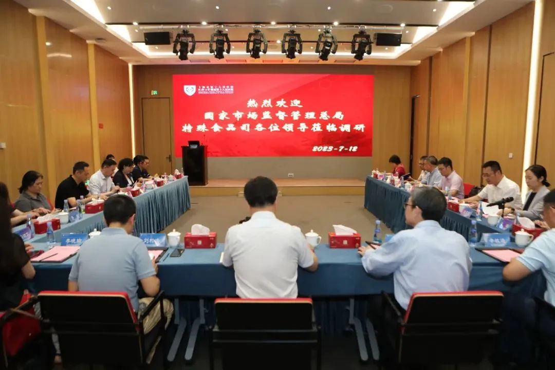 7月12日上午,國家市場(chǎng)監督管理總局特殊食品司司長(cháng)周石平、副司長(cháng)劉松濤、嬰配食品注冊處處長(cháng)李曉瑜、一級調研員辛敏通一行赴上海市第十人民醫院臨床醫學(xué)科創(chuàng )園調研特醫食品臨床應用工作。上海市市場(chǎng)監督管理局副局長(cháng)許瑾、特食處處長(cháng)王琳、三級調研員宋慶訓,上海市衛生健康委食品安全標準與監測評估處處長(cháng)徐奕麗、醫政醫管處王利江,上海市醫保局醫藥服務(wù)管理處陳天池等相關(guān)同志參加調研。