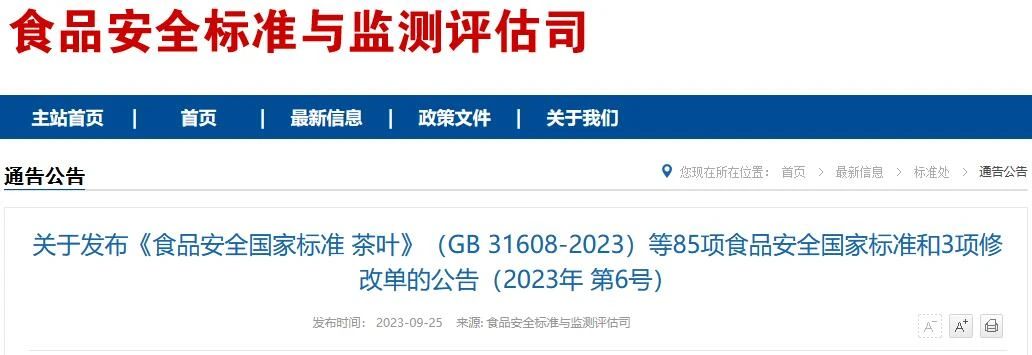 2023年9月25日,食品安全標準與監測評估司發(fā)布了85項食品安全國家標準和3項修改單的公告,其中包括:GB?29923-2023《食品安全國家標準?特殊醫學(xué)用途配方食品良好生產(chǎn)規范》,于2024年9月6日起實(shí)施。