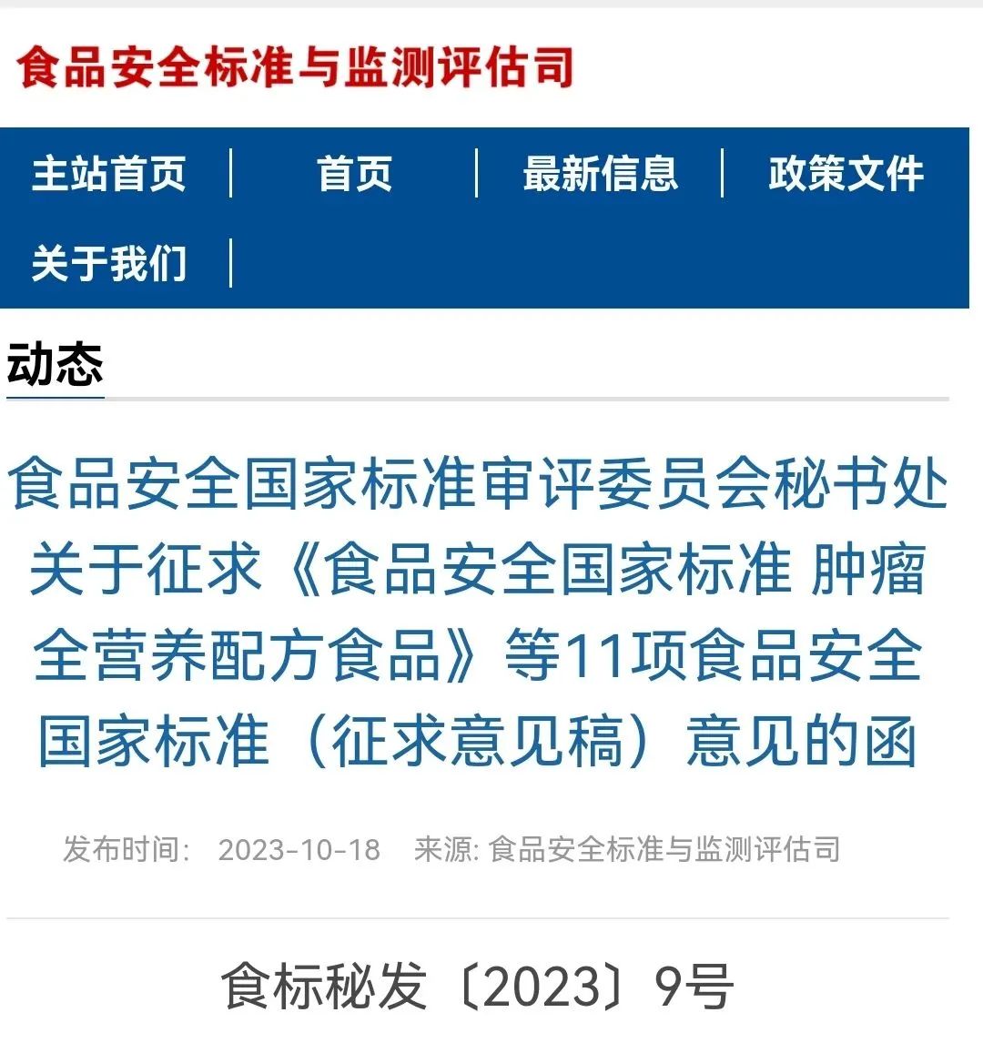 《食品安全國家標準 腫瘤全營(yíng)養配方食品》等11項食品安全國家標準(征求意見(jiàn)稿)征求意見(jiàn)