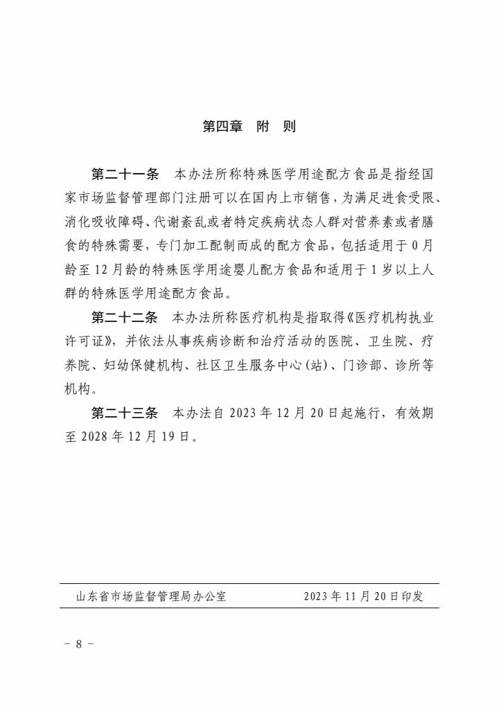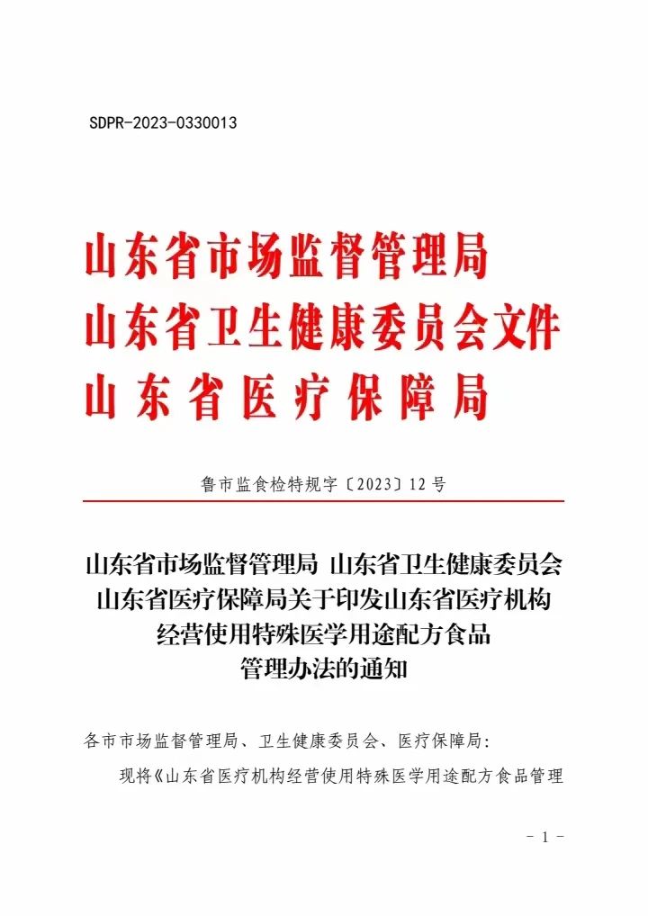 山東三部門(mén)聯(lián)發(fā)《醫療機構經(jīng)營(yíng)使用特醫食品管理辦法》