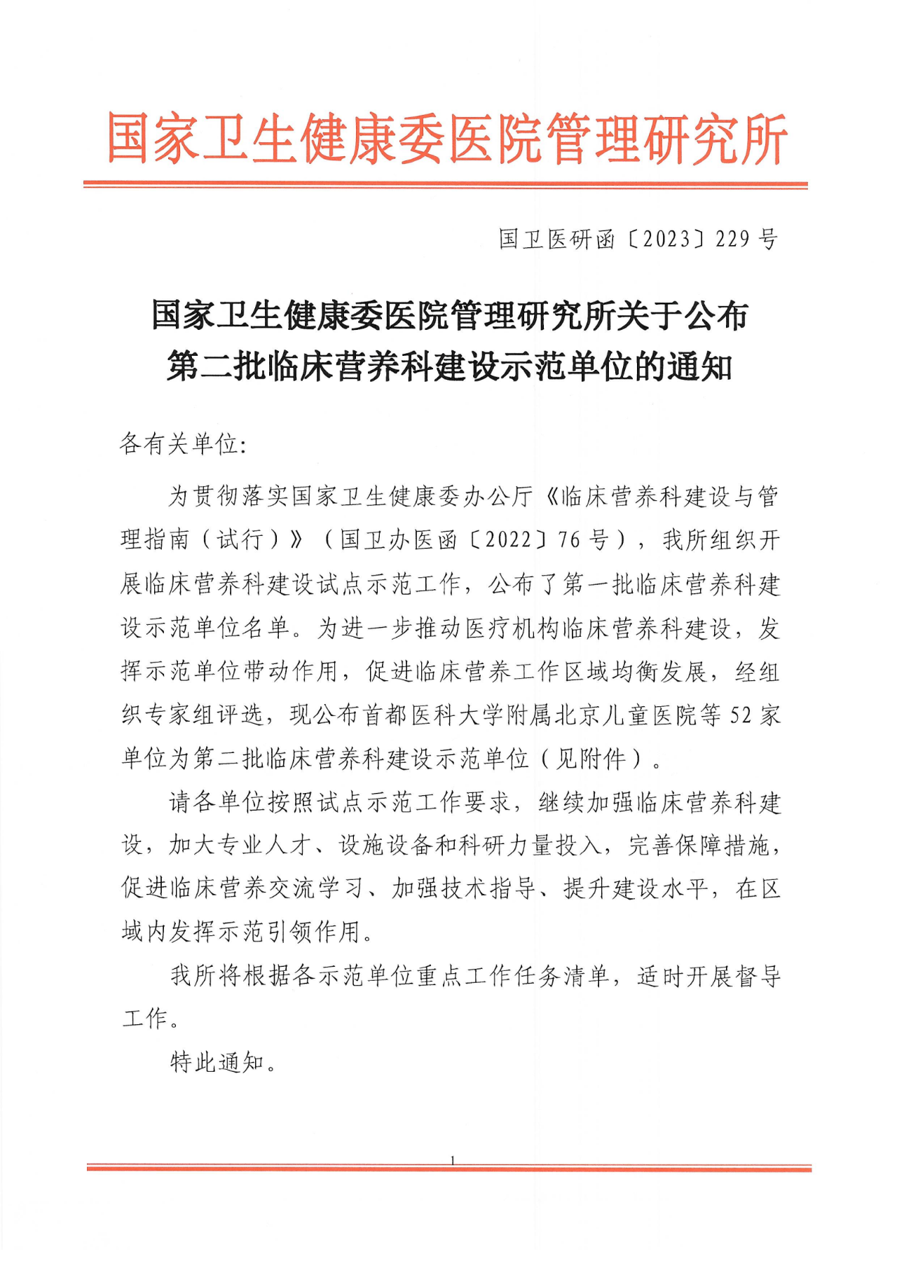 國衛醫研 | 第二批臨床營(yíng)養科建設示范單位名單