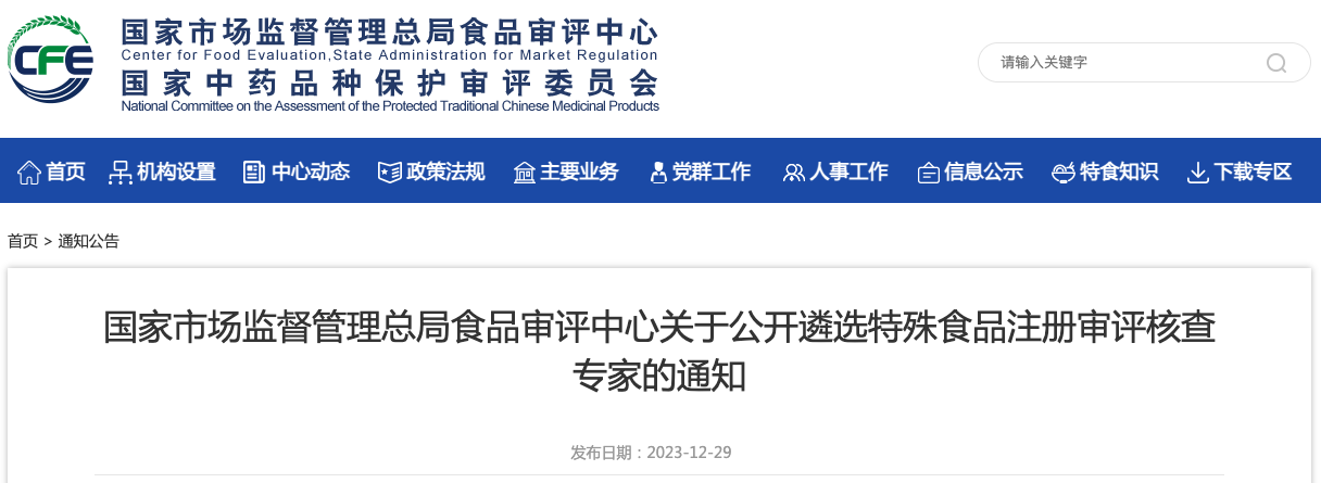 總局食品審評中心 | 關(guān)于公開(kāi)遴選特殊食品注冊審評核查專(zhuān)家的通知