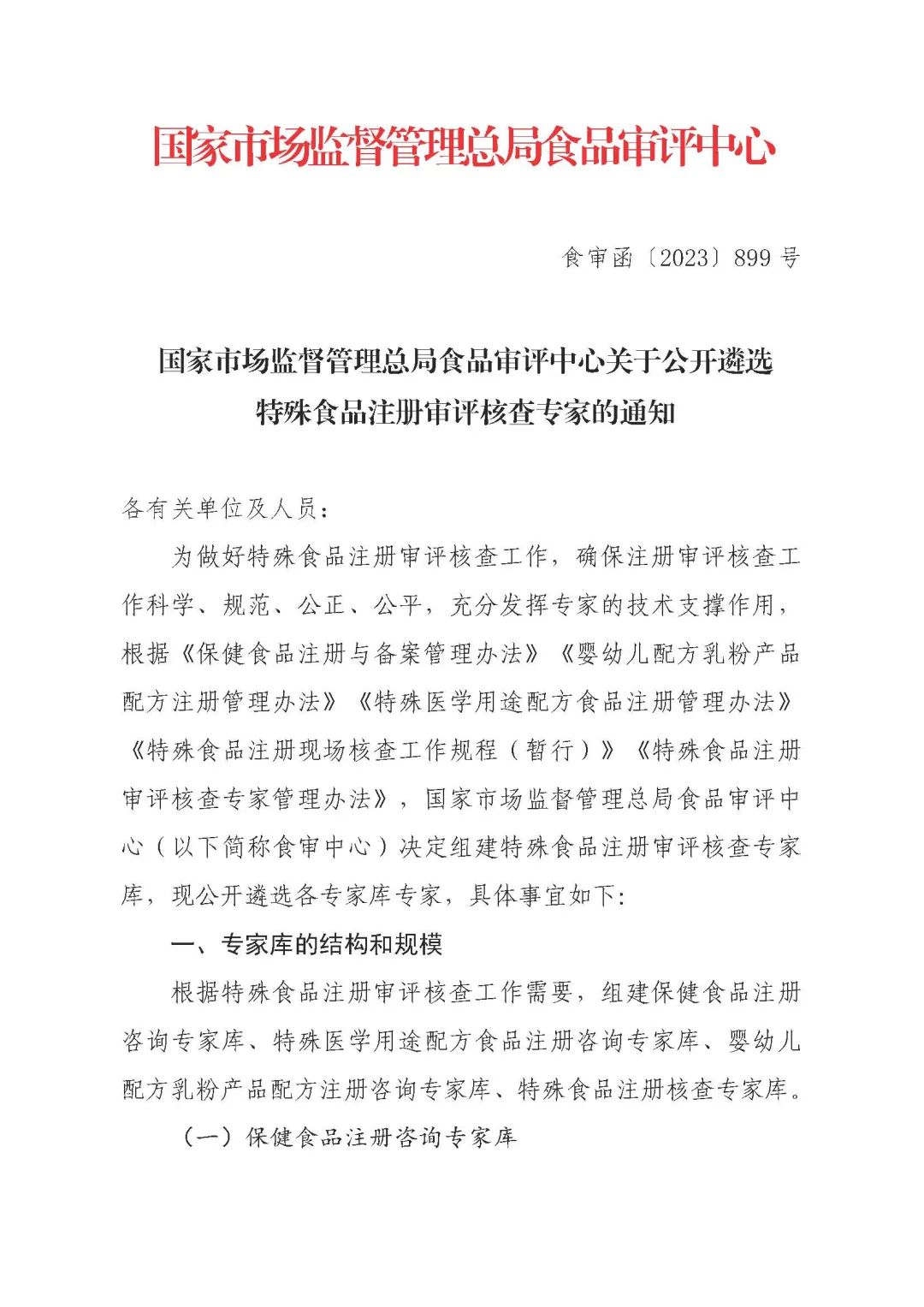 >> 總局食品審評中心 | 關(guān)于公開(kāi)遴選特殊食品注冊審評核查專(zhuān)家的通知