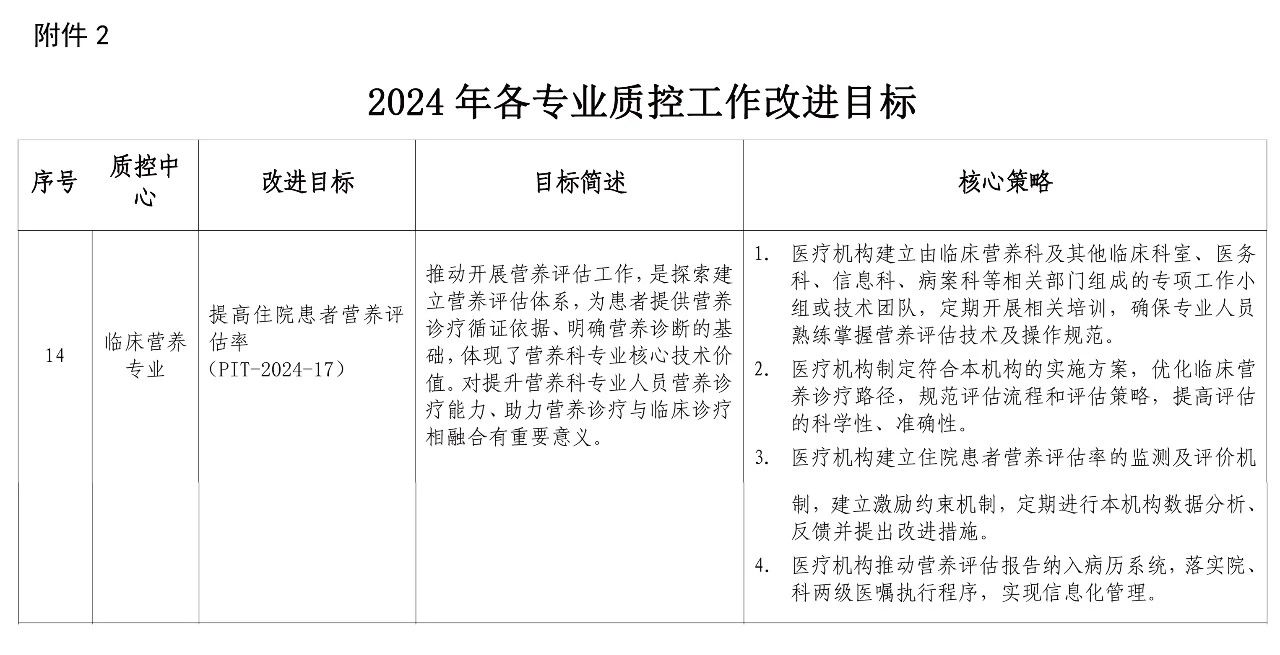 國家衛健委 | 2024臨床營(yíng)養專(zhuān)業(yè)質(zhì)控工作改進(jìn)目標(附解讀)