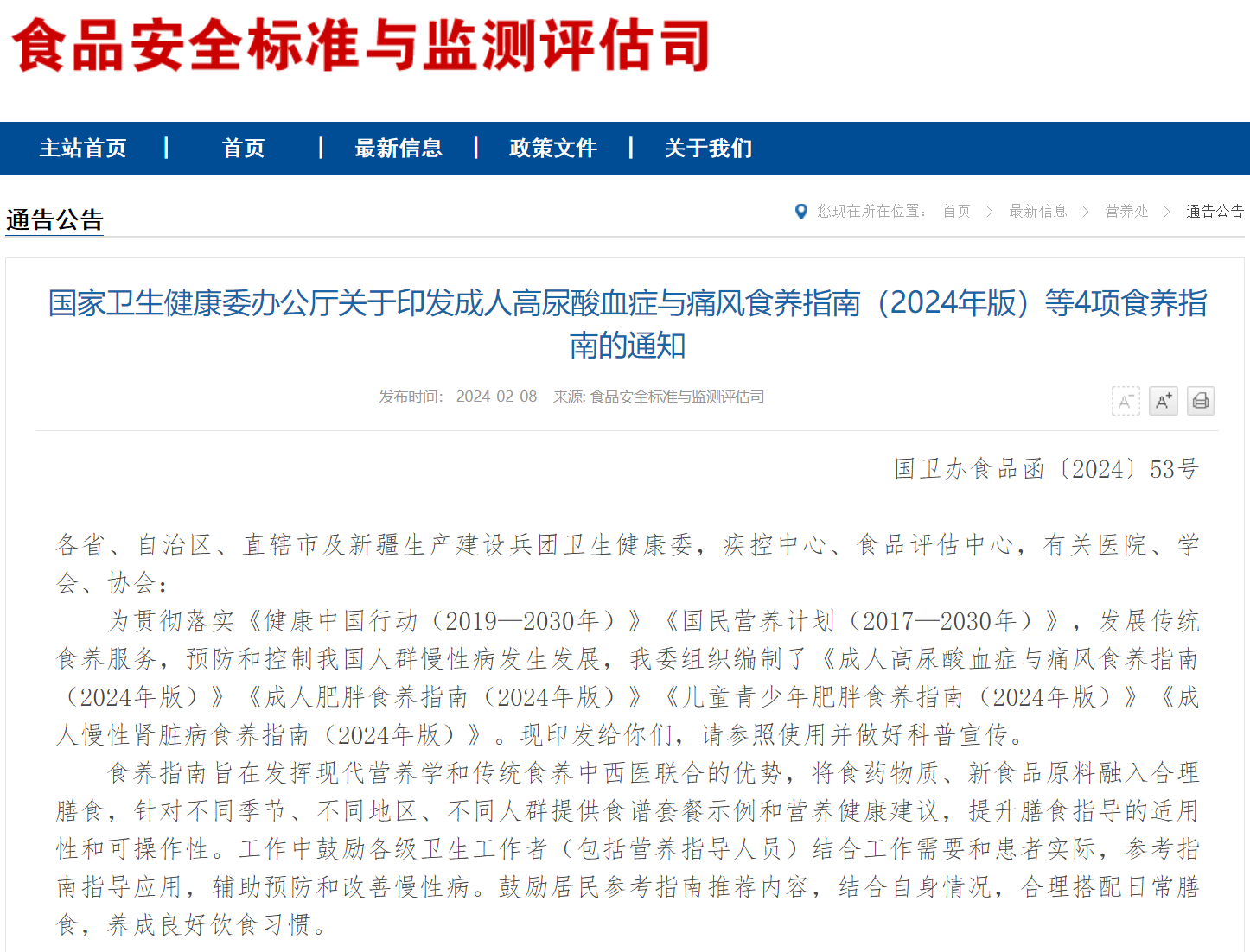 近日,國家衛生健康委印發(fā)4項2024年版食養指南,鼓勵各級衛生工作者(包括營(yíng)養指導人員)結合工作需要和患者實(shí)際,參考指南指導應用,輔助預防和改善慢性病。