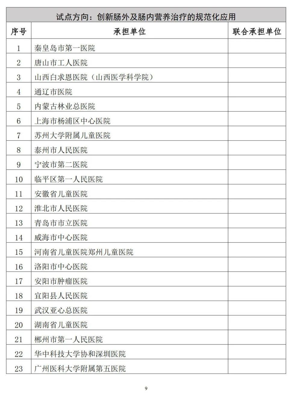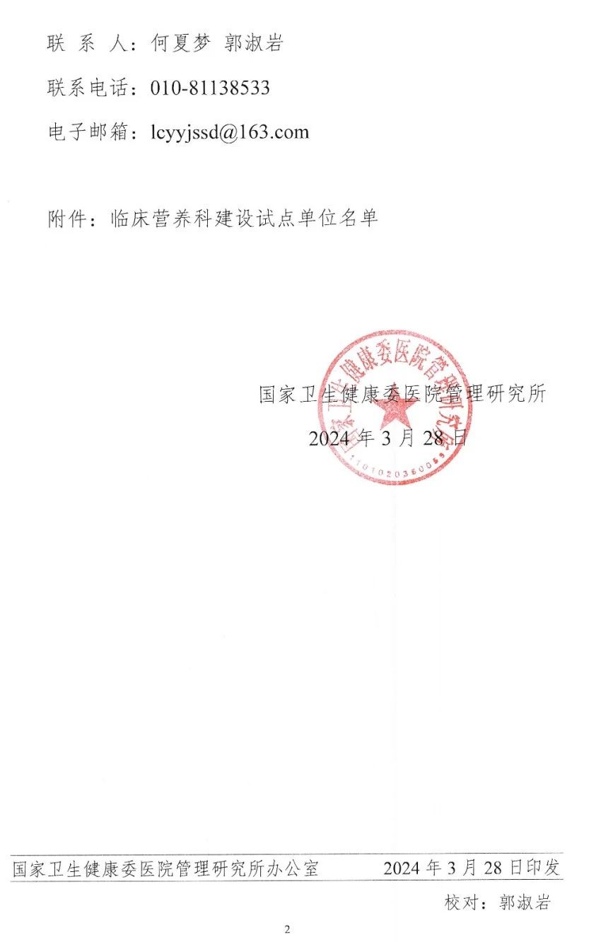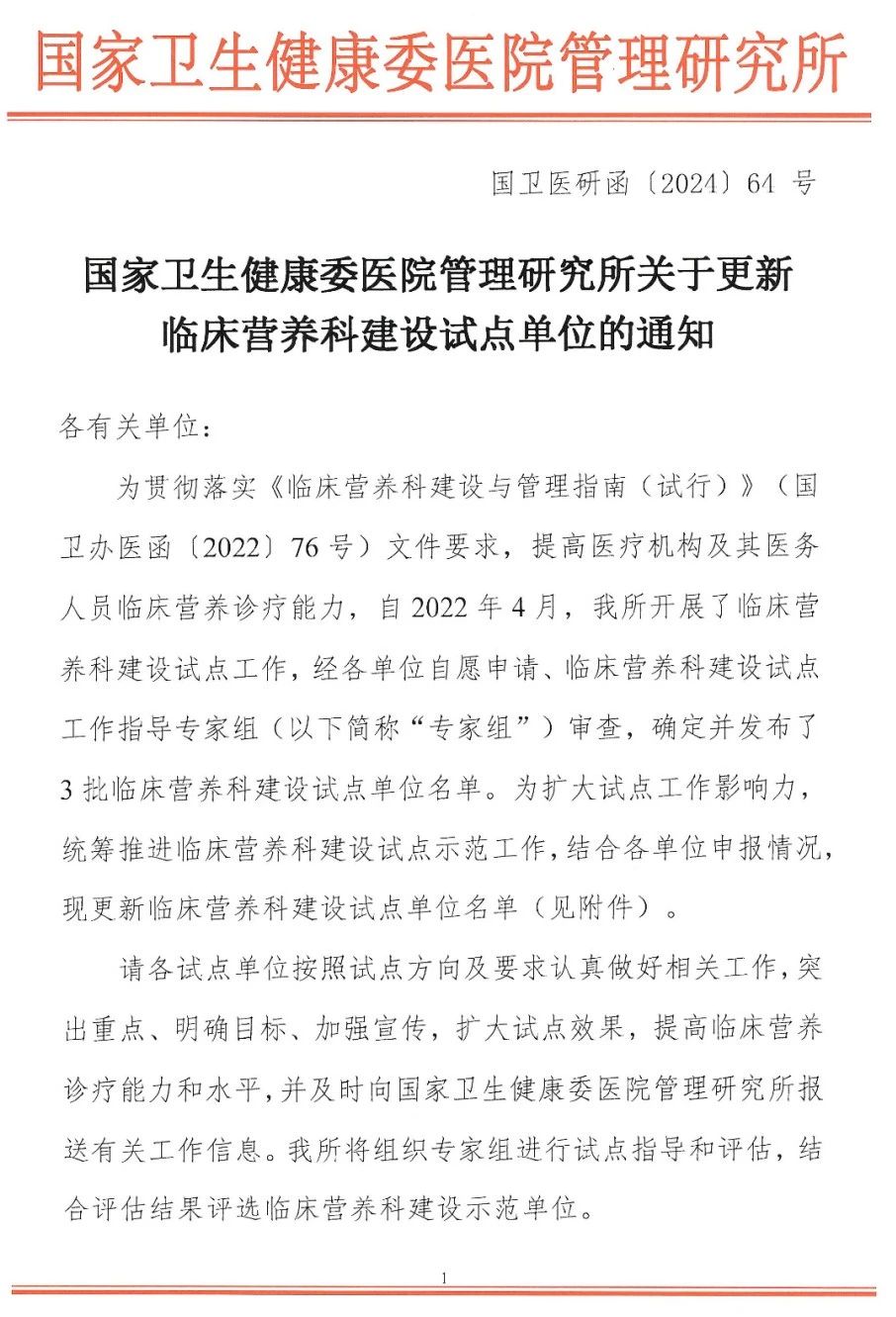 國衛醫研所 | 臨床營(yíng)養科建設試點(diǎn)單位名單更新