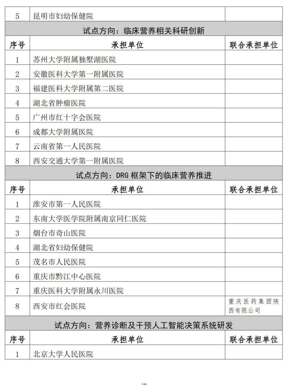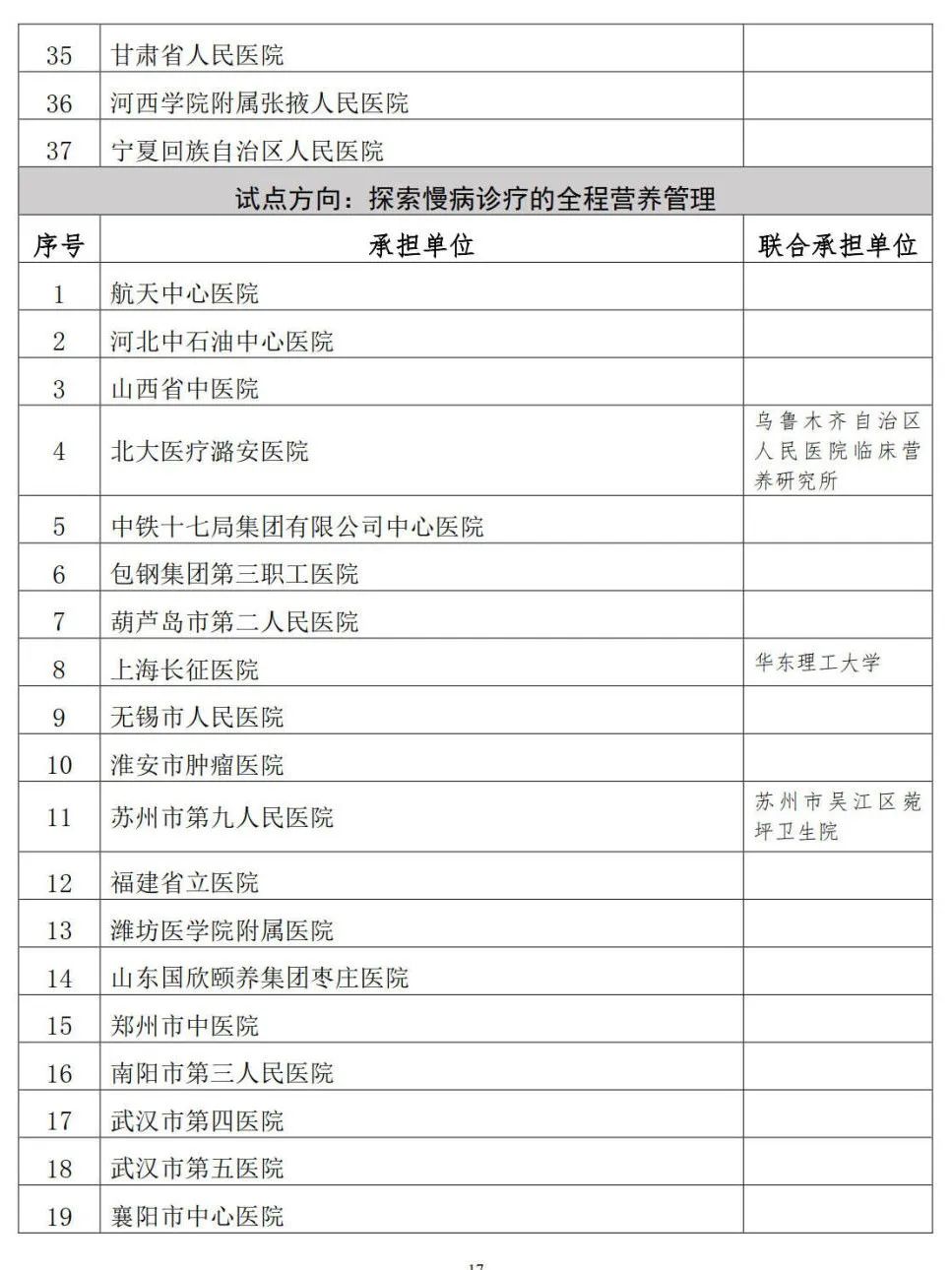 >> 國衛醫研所 | 臨床營(yíng)養科建設試點(diǎn)單位名單更新
