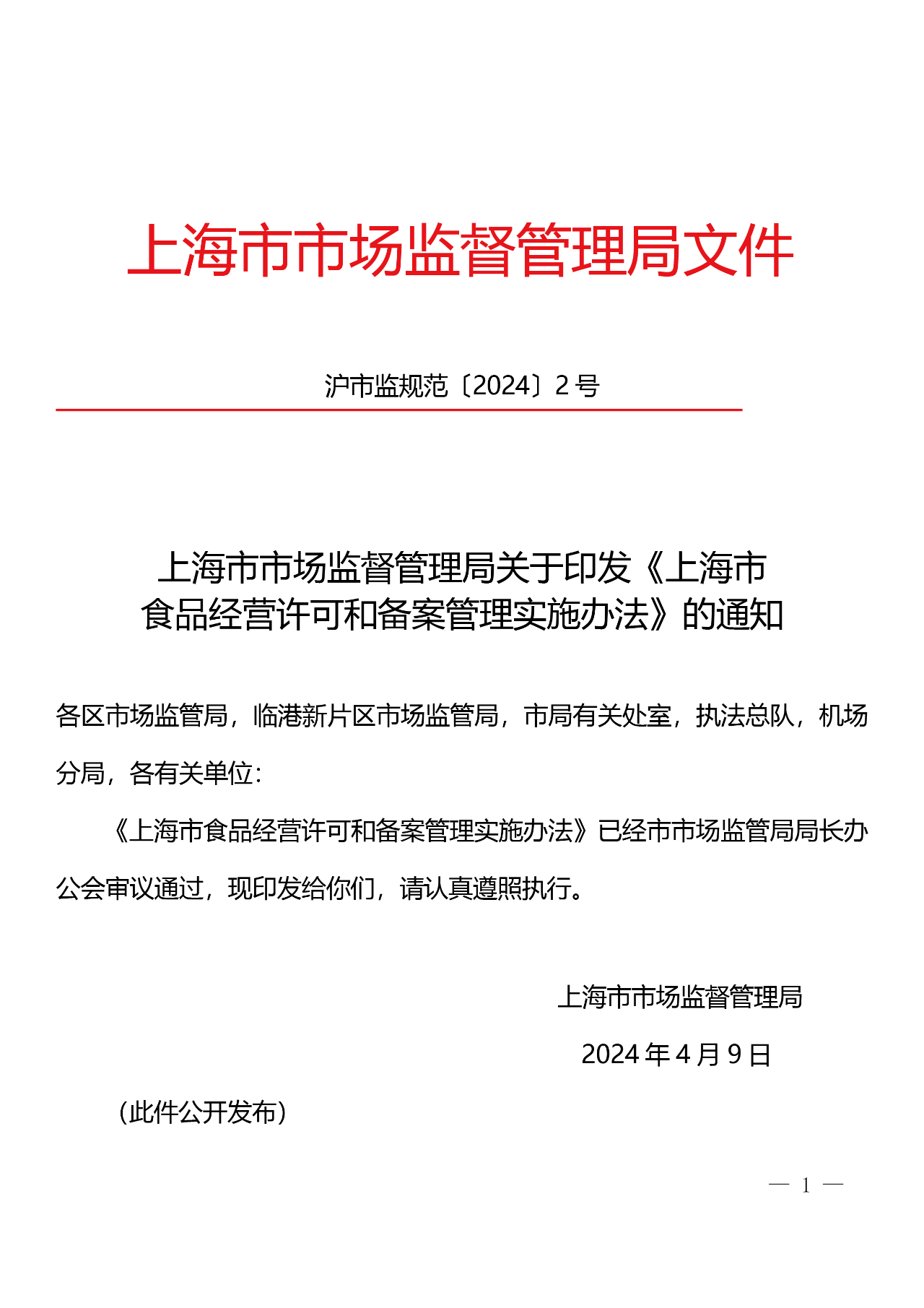 為規范食品經(jīng)營(yíng)許可和備案工作,加強食品經(jīng)營(yíng)監督管理,上海市市場(chǎng)監管局起草發(fā)布了《上海市食品經(jīng)營(yíng)許可和備案管理實(shí)施辦法》(以下簡(jiǎn)稱(chēng)《辦法》),辦法將于2024年5月10日起施行,有效期至2029年5月9日。