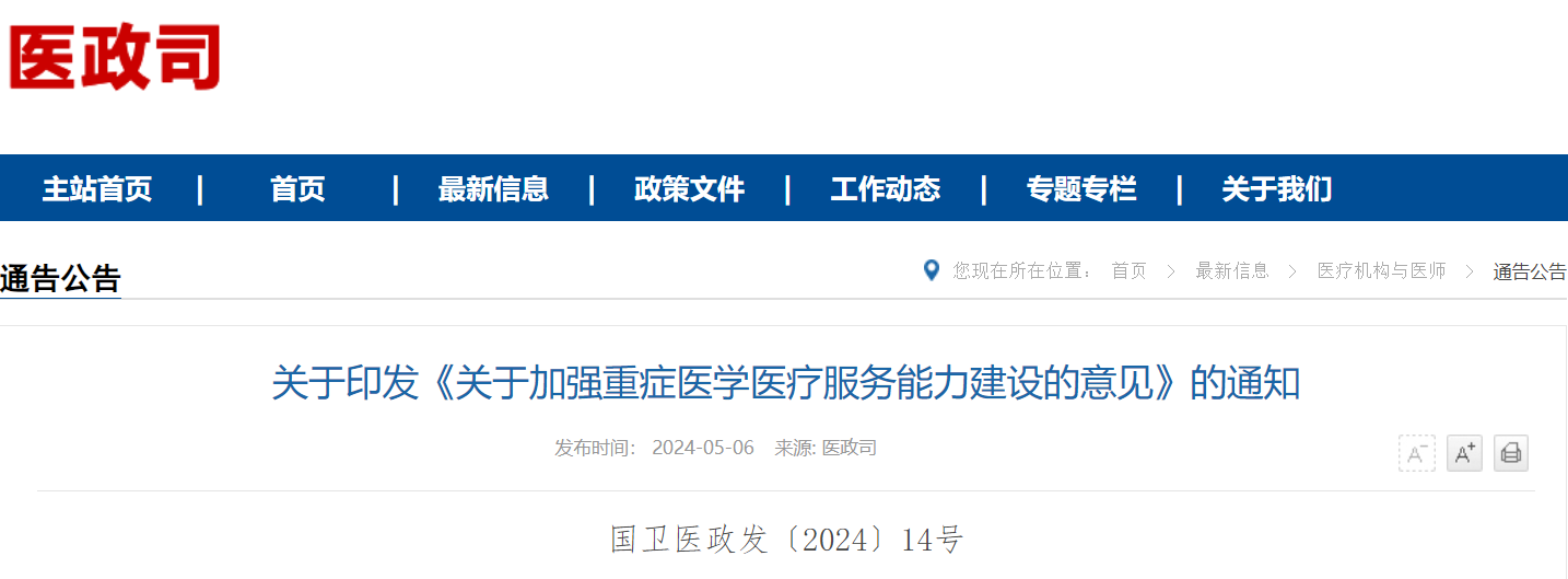 為全面推進(jìn)重癥醫學(xué)醫療服務(wù)能力高質(zhì)量發(fā)展,近日,國家衛健委、國家發(fā)改委、國家中醫藥管理局、國家疾控局等八部門(mén)聯(lián)合制定了《關(guān)于加強重癥學(xué)醫療服務(wù)能力建設的意見(jiàn)》。圍繞重癥醫學(xué)醫療服務(wù)能力建設,從完善重癥醫學(xué)醫療服務(wù)網(wǎng)絡(luò )、加強重癥醫學(xué)專(zhuān)科能力、擴充重癥醫學(xué)專(zhuān)業(yè)人才隊伍、推進(jìn)重癥醫學(xué)醫療服務(wù)領(lǐng)域改革等五方面提出意見(jiàn),其中明確提出: