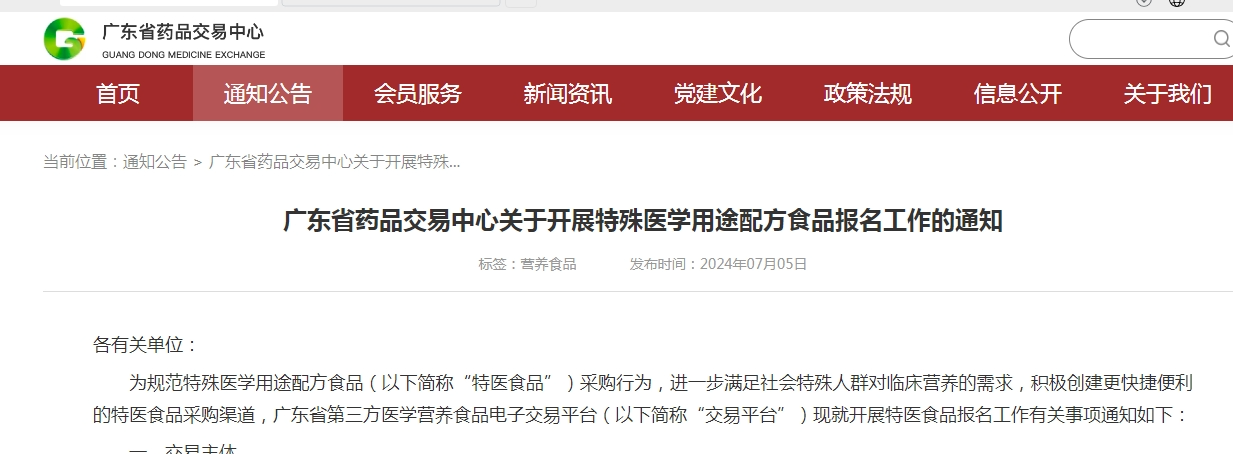 廣東省藥品交易中心關(guān)于開(kāi)展特殊醫學(xué)用途配方食品報名工作的通知