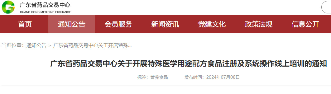 【通知】廣東省藥品交易中心關(guān)于開(kāi)展特醫食品注冊及系統操作線(xiàn)上培訓