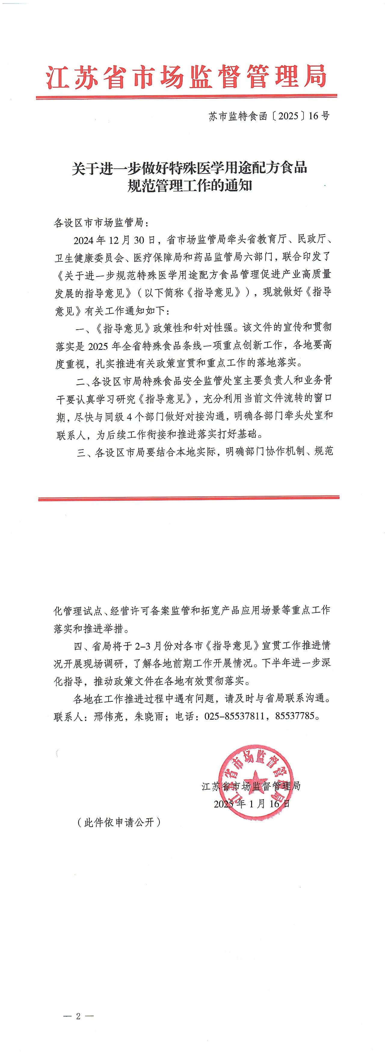 江蘇省發(fā)布關(guān)于進(jìn)一步做好特殊醫學(xué)用途配方食品規范管理工作的通知