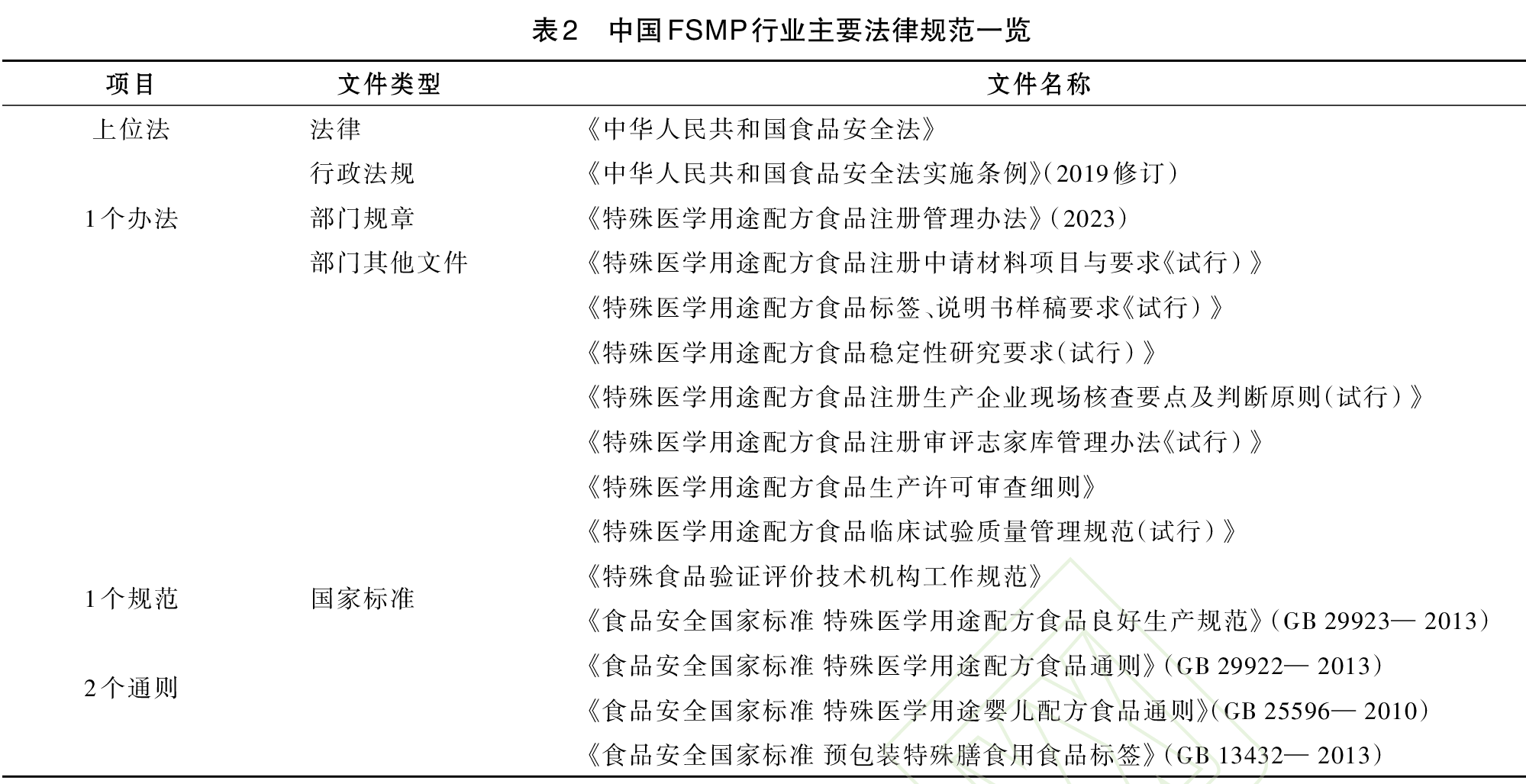 特醫食品早在 1974年于我國臨床應用,此時(shí)特醫 食品被歸類(lèi)為化學(xué)藥品,其銷(xiāo)售需經(jīng)藥品批準后上市。自2010年起,我國陸續發(fā)布 《食品安全國家標準 特殊 醫學(xué)用途嬰兒配方食品通則》(GB 25596— 2010)、《食 品安全國家標準 特殊醫學(xué)用途配方食品通則》(GB 29922— 2013)、《食品安全國家標準 特殊醫學(xué)用途配方 食品良好生產(chǎn)規范》(GB 29923— t2013),分別就特醫 食品的成分及標簽、流通環(huán)節、人員場(chǎng)所需求等作出明 確規定,初步形成了FSMP行業(yè)的三部強制性規范,自 此我國特醫食品建立起了 1個(gè)生產(chǎn)規范+2個(gè)產(chǎn)品通則+其它相關(guān)配套文件的食品安全國家標準管理模式 [5]。2015年,《食品安全法》重新修訂,首次將特醫食品歸入食品行業(yè)領(lǐng)域管理,明確特醫食品的注冊體制。隨著(zhù)《特殊醫學(xué)用途配方食品注冊管理辦法》及6個(gè)配套文件的實(shí)行,我國 FSMP形成了“1+6”注冊管理體系。2023年,國家市場(chǎng)監督管理總局在 CFDA2016年第24號令的基礎上,修訂了特醫食品注冊管理辦法(國家市場(chǎng)監督管理總局令第85號),該規定已于 2024年1月1日正式施行,為FSMP行業(yè)管理提供了強有力的政策保障,促使FSMP行業(yè)持續健康發(fā)展。